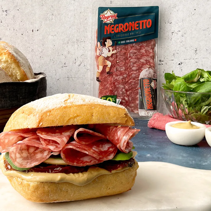 Street Eater – Panino con salame, scamorza affumicata, senape, cicorino e pomodori secchi