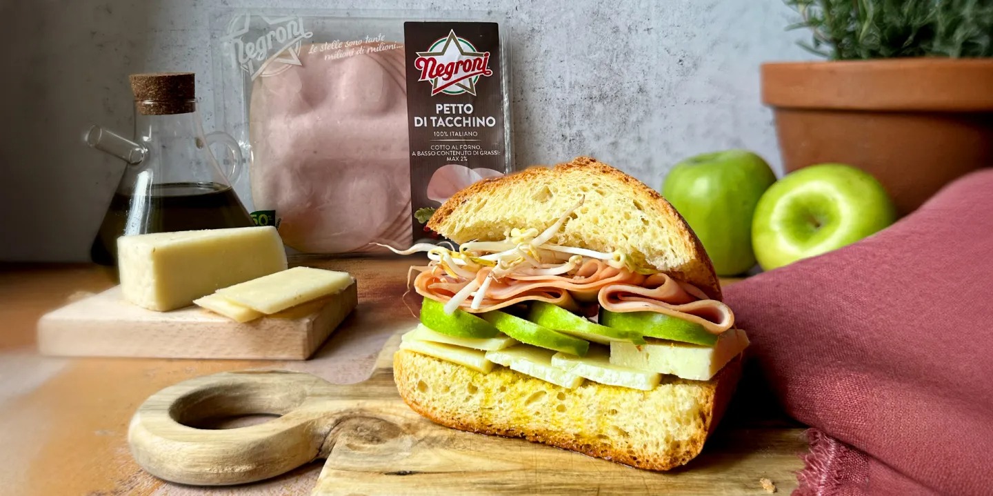 Turbo tacchino con petto di tacchino, pecorino, mele e germogli