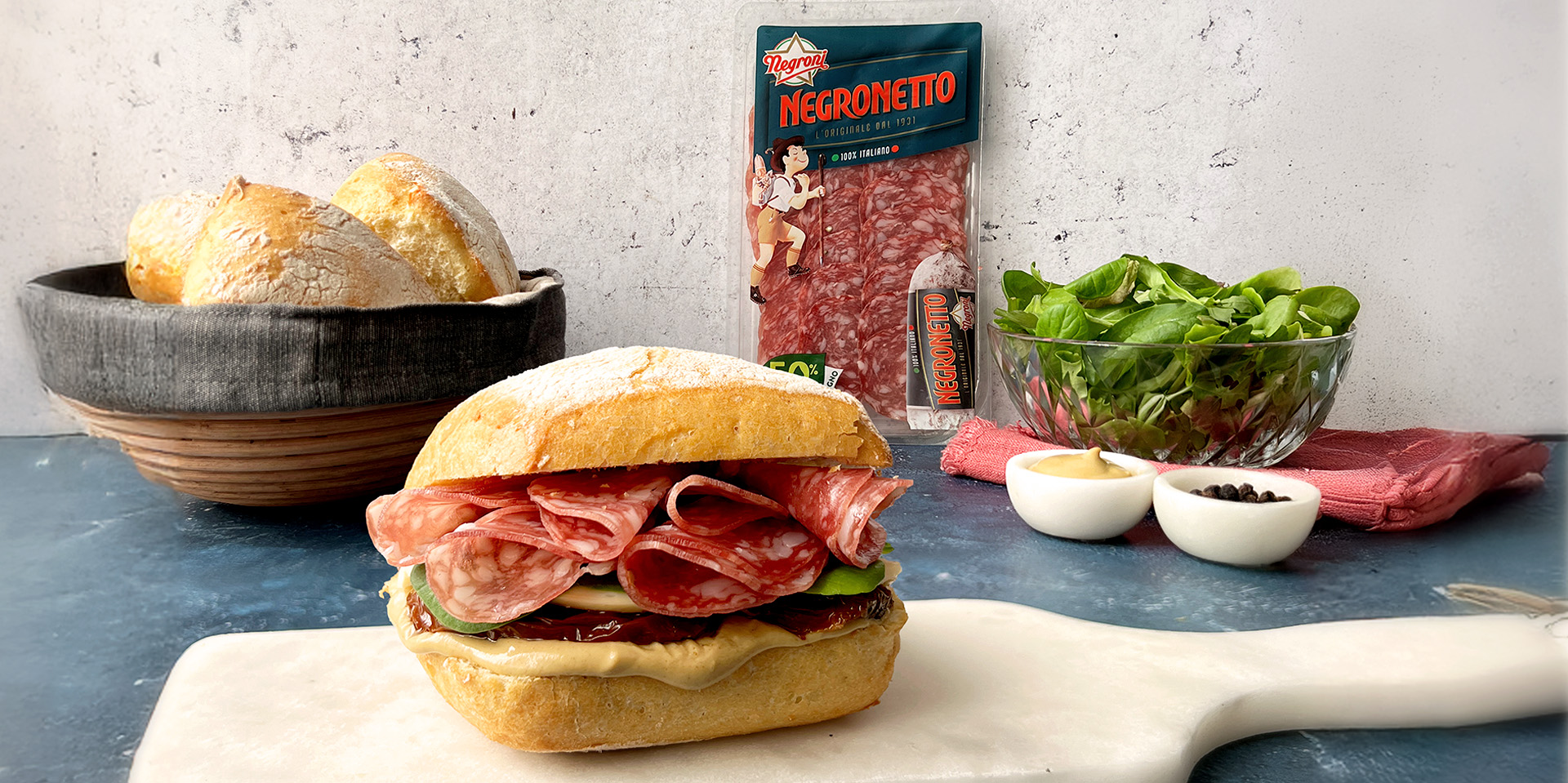 Street Eater – Panino con salame, scamorza affumicata, senape, cicorino e pomodori secchi