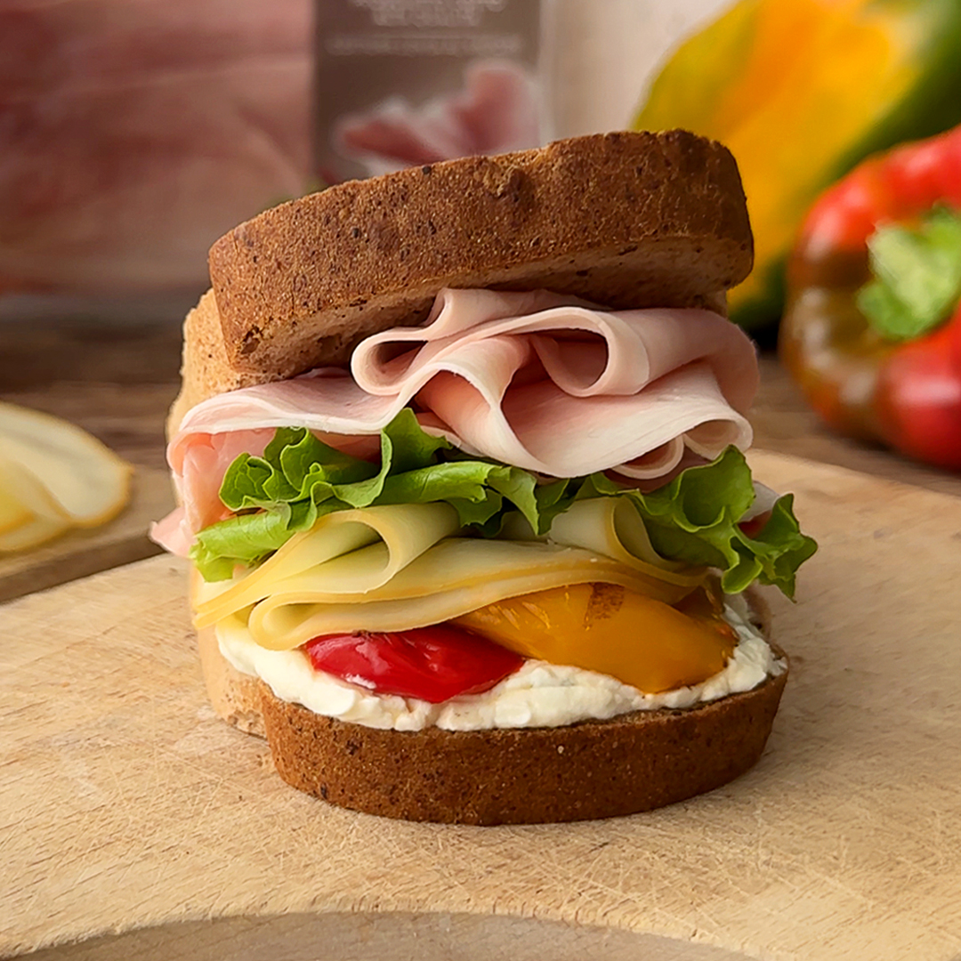 Amigo: panino con prosciutto cotto, peperoni grigliati e provola affumicata