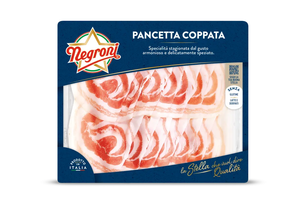 La salatura artigianale e l'aromatizzazione donano alla Pancetta Coppata, dalla fette sottili e morbide, un gusto intenso.