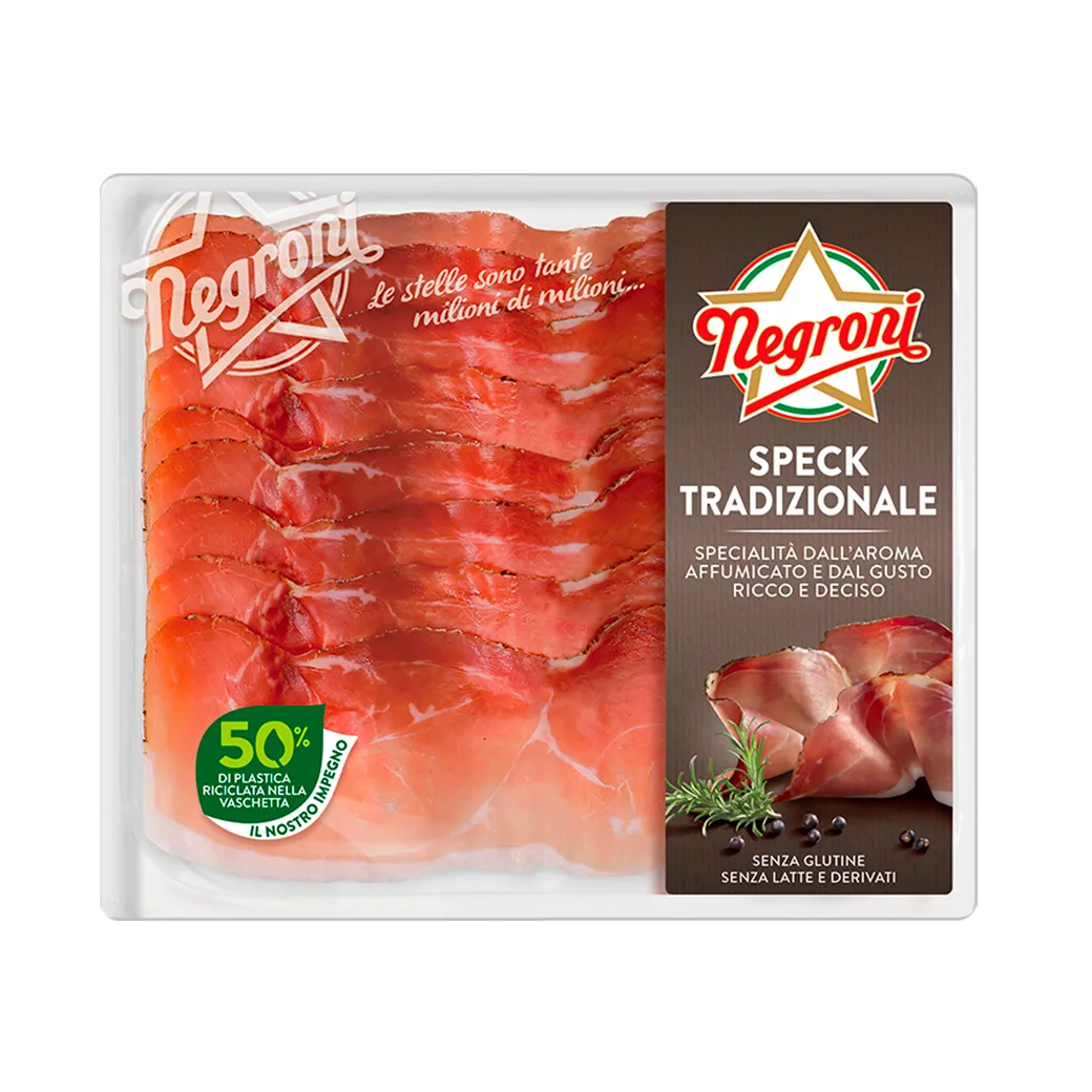 Lo Speck Tradizionale è una specialità che si caratterizza per il suo profumo affumicato e per il gusto ricco e deciso.