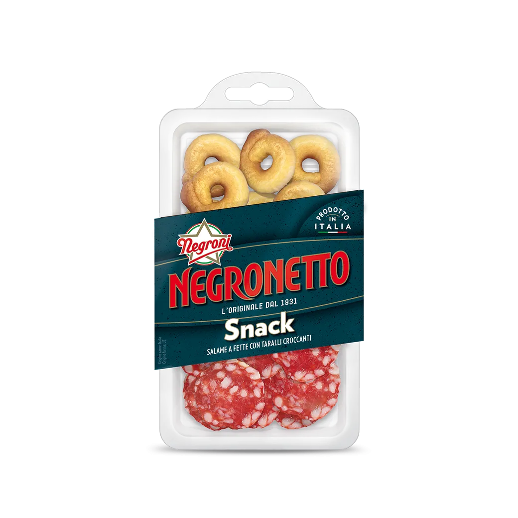 Prodotto misto costituito dall’abbinamento di Negronetto a fette con croccanti Taralli, confezionati separatamente in vaschetta doppia.