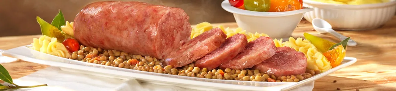 Prodotto da carni italiane scrupolosamente selezionate, il Cotechino si caratterizza per la macina media, la consistenza, morbida, gusto e profumi intensi.