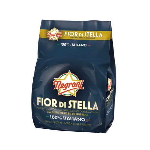 Prosciutto cotto ottenuto da cosce pesanti di suino cotte con cura per donare al prodotto un gusto intenso ed una fetta morbida.