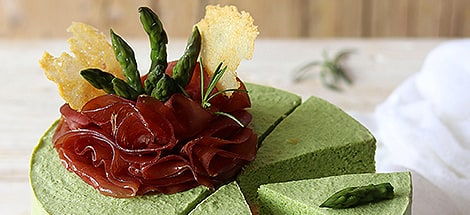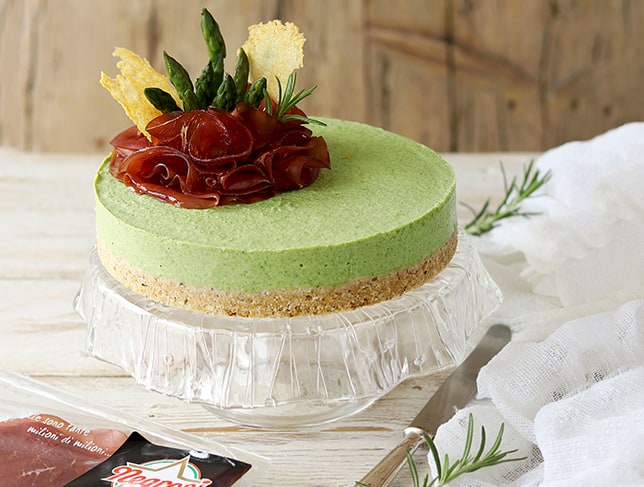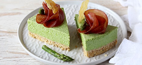 Cheesecake agli asparagi, bresaola e cialde di parmigiano