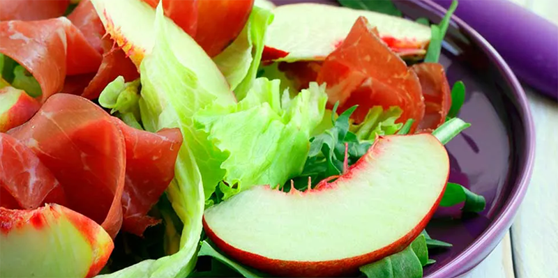 Insalata di bresaola, pesche noci e dressing di agrumi
