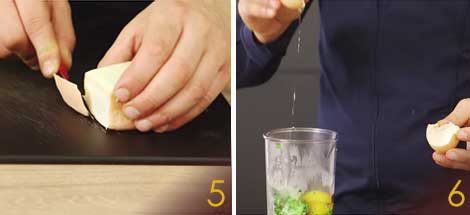 Togliete la buccia al taleggio (5) e tagliatelo in pezzetti che dovranno sciogliersi nella besciamella. In un mixer lavorate 3/4 dei broccoli, aggiungete la panna, l’uovo intero e un tuorlo e frullate (6).