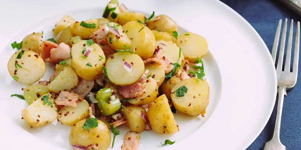 Un piatto unico facile e veloce. L’insalata di patate e lardo è golosa per tutti.