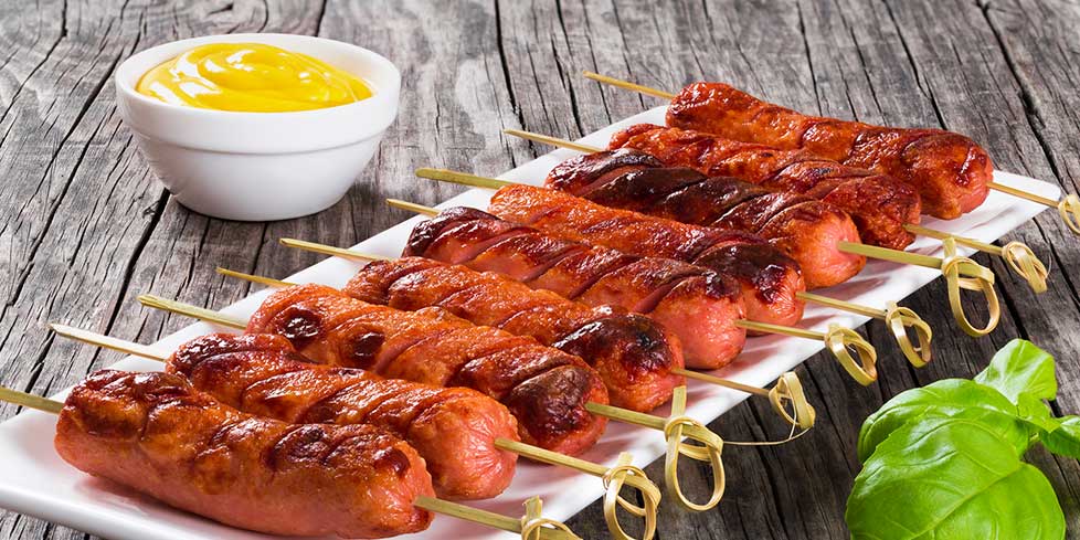 I wurstel sono perfetti per degli spiedini. I Golosino Negroni sono già golosi di natura, ma in versione spiedini diventeranno irresistibili. Fate scaldare la griglia e nel frattempo incidete i wurstel con dei tagli obliqui. In aggiunta ai wurstel potete usare per questi spiedini anche del fomaggio come l'emmenthal o una cacciottina dolce. Non dimenticate di portare in tavola anche una salsa come la senape o la maionese.