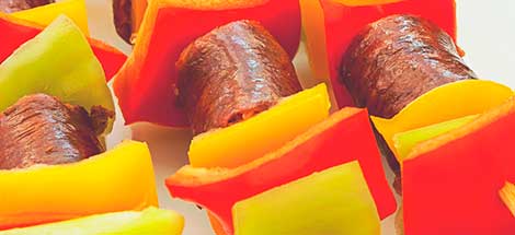 Divertenti e colorati, gli spiedini di salsiccia e peperoni sono uno dei classici dell'estate. Si possono fare al barbeque oppure cuocerli alla piastra e il pranzo è pronto. Tagliate le salsicce in pezzettoni e i peperoni in quadrati. Alternateli sugli stecchini e metteteli in cottura per il pranzo. Per un antipasto sfiziosissimo oppure per un aperitivo diverso provate a usare la Salsiccia Classica in cubetti Negroni: infilzate ogni cubetto sui bastoncini di legno come se fossero degli arrosticini. Basteranno pochi minuti in padella per dei deliziosi bocconcini da servire ben caldi.
