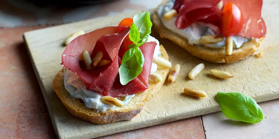 | Tartine di Pasqua: speck e funghi |