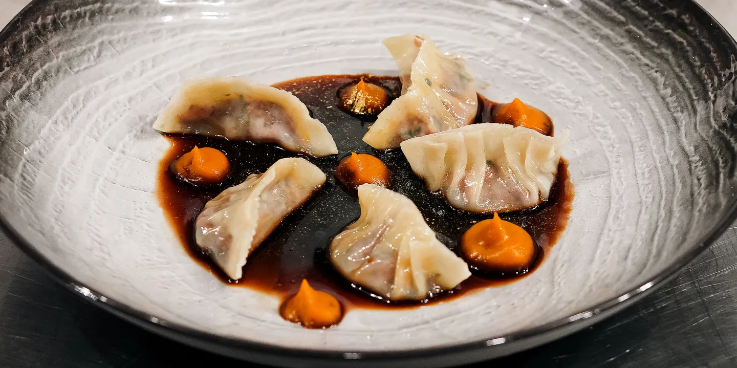Gyoza con ripieno di Gran Cotechino e crema di zucca aromatizzata