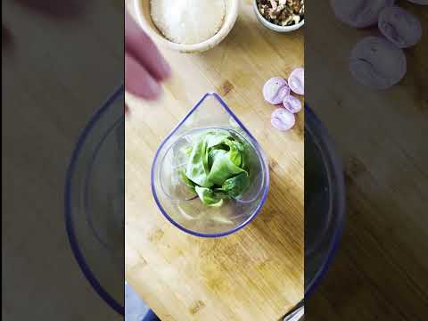 Frullate insieme lo spinacino, lo spicchio di aglio privato dell’anima, lo scalogno, il Parmigiano Reggiano, le noci, il succo di limone, le foglie di basilico, un filo di olio extravergine di oliva e una presa di sale fino a ottenere una crema liscia.