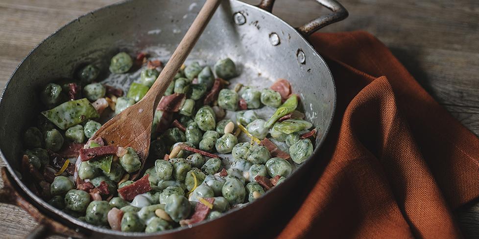 La preparazione degli gnocchetti verdi è semplice: patate, spinaci, farina e il tocco leggermente agrumato del limone. Non dimenticate le taccole e i pinoli a guarnire. Servite questo primo piatto gustatelo ben caldo.