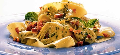 Primo: Pappardelle ai carciofi e guanciale (40 minuti)