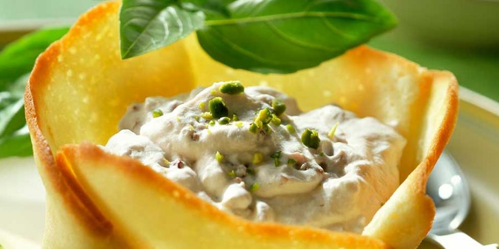Le più classiche ricette di antipasti sono a base di fritture: verdure in pastella, pettole oppure il baccalà fritto senza dimenticare la crema, fritta anch'essa. Ma nessuno vi vieta di servire come antipasto per il pranzo del 25 dicembre, un grande tagliere con salumi e formaggi accompagnati da marmellate o miele. L'importante è non esagerare nelle quantità, l'antipasto deve solo stuzzicare l'appetito. Preparate un paio di crostini di pane, salame e olive per ciascun ospite, sistemate sulla tavola una fiamminga con un carpaccio di bresaola e rucola e su un altro piatto gli gnocchi fritti con il lardo. Ne basterà uno ciascuno. Come antipasto cremoso e coreografico potete preparare l'insalata capricciosa servita in cestini di pasta fillo.