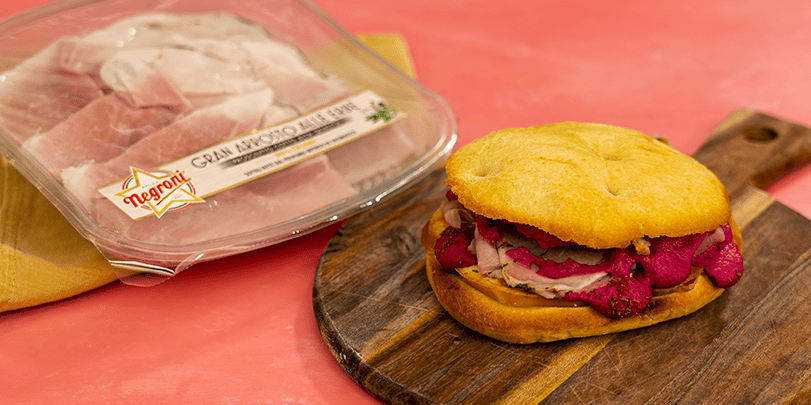 La ricetta di questo panino è davvero infallibile anche perché, come Lello ci insegna, il primo segreto per preparare un buon panino è scegliere bene gli ingredienti. Protagonista assoluto di questa veloce ricetta è infatti il Gran Arrosto alle Erbe Negroni, il cui sapore autentico viene valorizzato da un hummus di ceci e barbabietola.