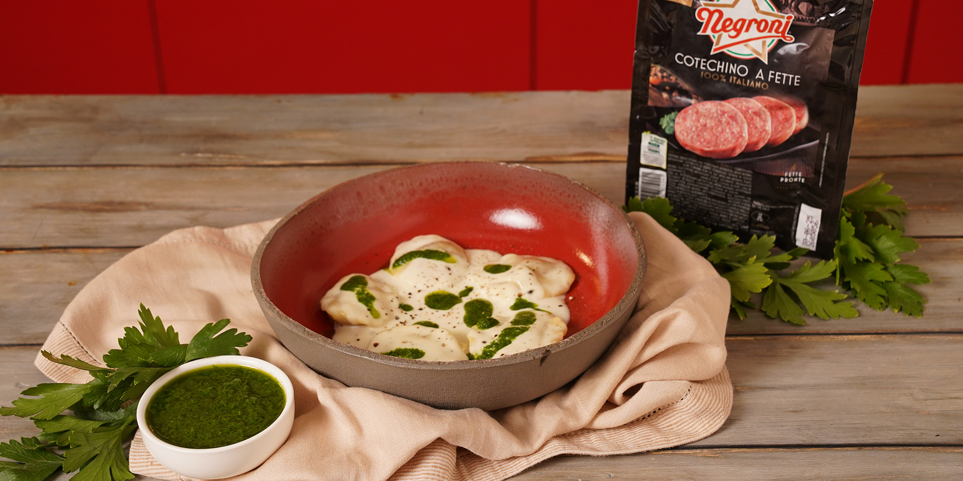 Avreste mai detto che potete realizzare la pasta fresca ripiena con alleati insospettabilmente golosi? Provate la ricetta di Chef in Camicia in esclusiva per Negroni: bottoni di cotechino con una golosa fonduta al formaggio e una salsa al prezzemolo freschissima.