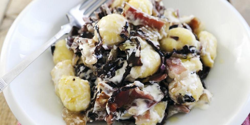 Il condimento ideale per gnocchi di patate è un ragù classico, robusto, come quello alla salsiccia: soffritto di cipolla, carne sgranata, sfumata con vino, passata e aromi.