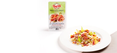 Il prosciutto crudo in petali Negroni è carnoso e saporito, così le vostre insalate di orzo o di pasta in genere saranno ancora più gustose.