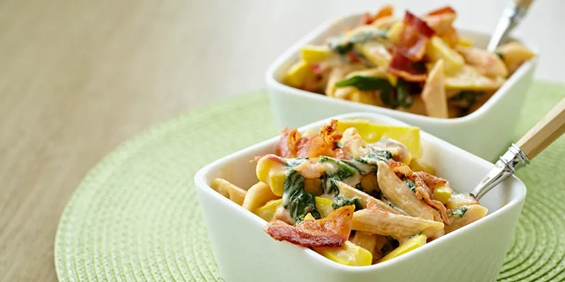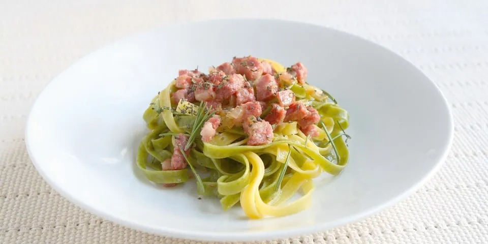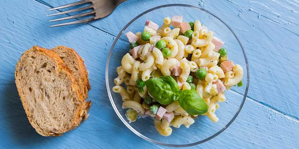 Ottima per il pranzo in ufficio, buona sia calda che fredda: l'insalata di pasta cotto e piselli è molto golosa.