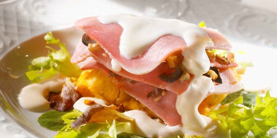 Millefoglie di prosciutto cotto e formaggio filante