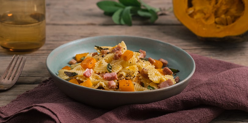 La pasta alla carbonara perfetta per l’autunno, un mx di sapori perfettamente abbinati che donano colore e gusto a un pranzo di famiglia o diventano protagonisti di una cena romantica. La pasta alla carbonara con zucca alle erbe aromatiche è una ricetta irresistibile: la zucca viene insaporita da salvia, rosmarino e timo e la classica carbonara preparata con i Cubetti di Pancetta Affumicata Negroni, esalta maggiormente tutto il suo straordinario sapore.
