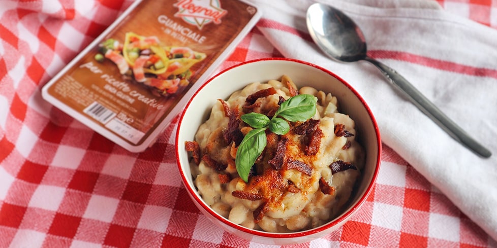 Carlo Gibertini entra nella cucina di Negroni per proporre una ricetta davvero originale e allo stesso tempo ricercata. Dimenticate la classica pasta e fagioli, quella che preparerà Carlo Gibertini sarà un piatto gourmet impreziosito addirittura dalla presenza dei Petali di Guanciale Negroni.