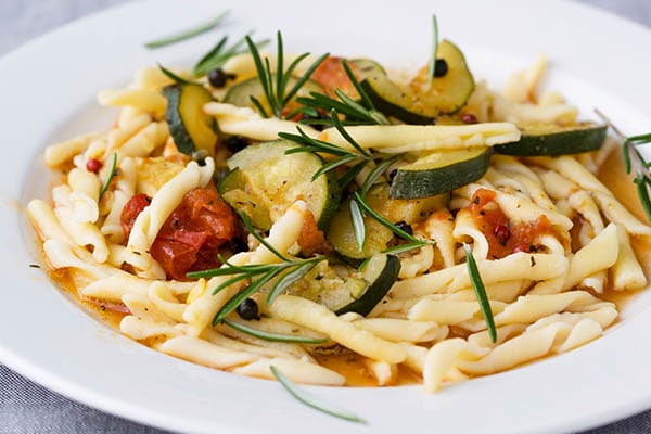 3 ricette di pasta fredda per il pic nic di Pasquetta: Strozzapreti con zucchine e speck in petali