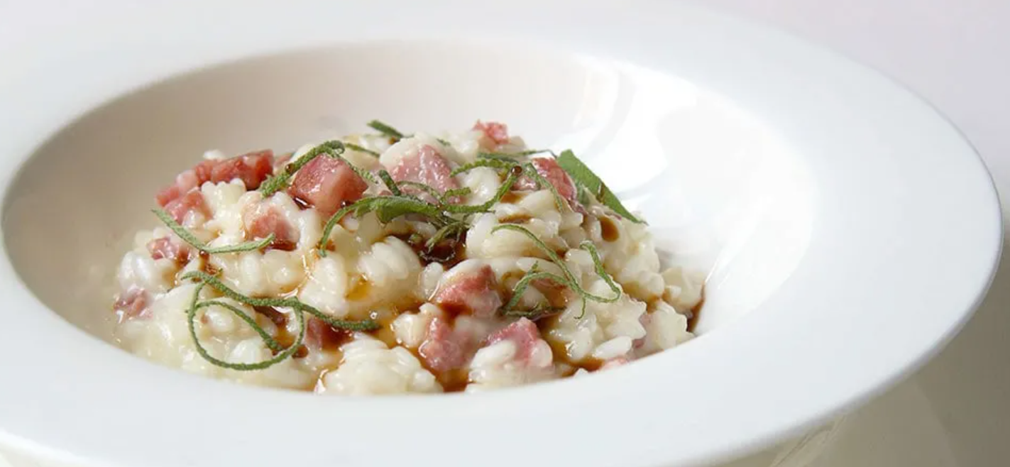 Risotto alla gricia con lo speck Negroni: lo speck, grazie al suo sapore deciso e alla leggera affumicatura, dona una complessità interessante al piatto. Usa lo speck tagliato a striscioline sottili e fallo rosolare fino a renderlo croccante, proprio come faresti con il guanciale.