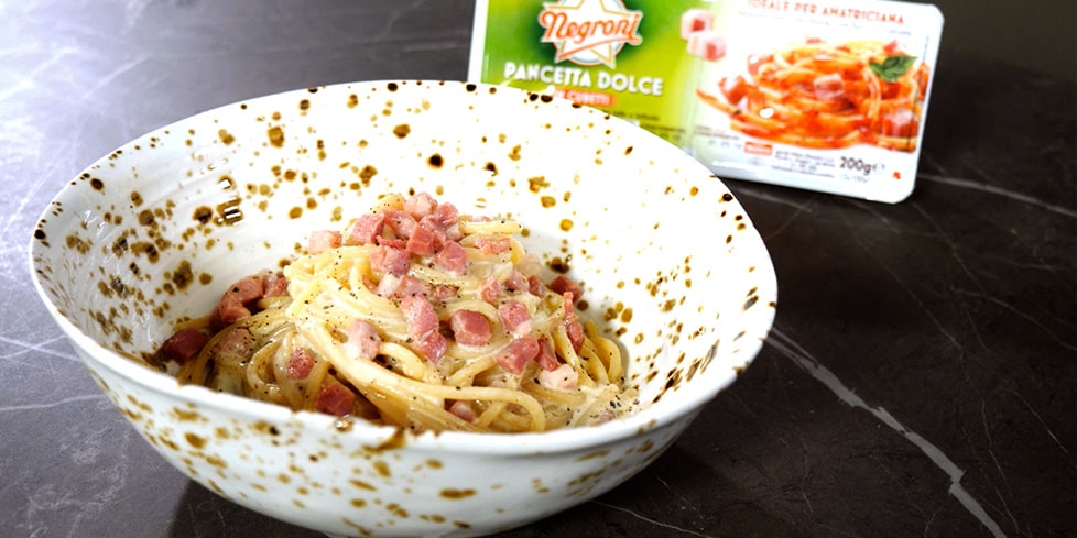 Una rivisitazione inedita della classica carbonara, ideata e preparata da Simone Rugiati.