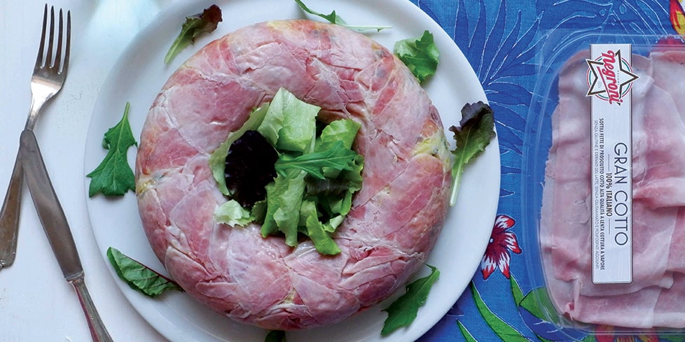 Questa ricetta vivace e coloratissima, ha come protagonista il Gran Cotto 100% italiano Negroni ed è perfetta come piatto speciale durante un brunch. Il timballo di riso con prosciutto cotto, piselli e curcuma è ideale anche per un pranzo della domenica o per una cena tra amici. Ecco come prepararlo!