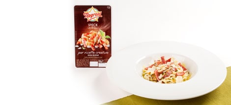 Lo speck in petali Negroni è pronto per essere inserito nelle ricette, regalando un gusto speziato e riconoscibile che renderà irresistibile tanti primi piatti. Simone Rugiati ha scelto lo speck in petali Negroni per rivisitare i passatelli in brodo di chiodini e per rendere perfetti gli gnocchi di patate con lo stracchino.