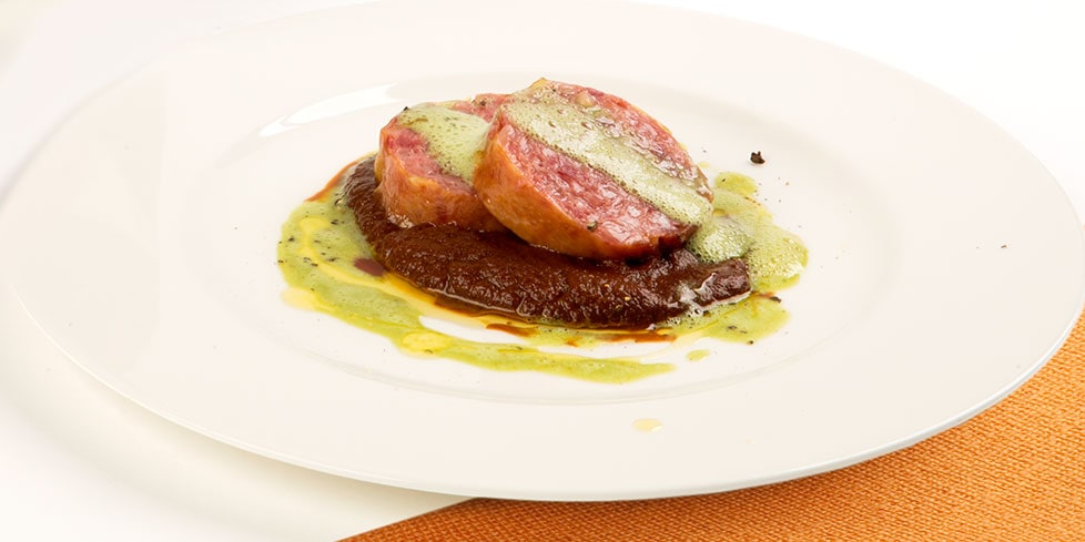Cotechino con crema di carote nere allo zenzero, Rugiati per Negroni