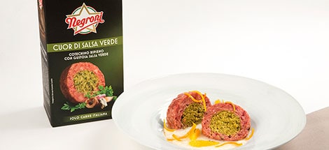 Tra la gamma dei prodotti Negroni, non solo i salumi e gli affettati in genere, ma anche i grandi classici della tavola come lo Zampone, lo Stinco e il Cotechino. Quest'ultimo in particolare arriva sulle nostre tavole rinnovato in due ricette golose: il Cotechino Cuor di Salsa Verde e il Cotechino Cuor di Lenticchie. In soli 25 minuti potrete portare in tavola un piatto completo e tradizionale.