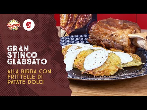 Gran Stinco glassato alla birra con frittelle di patate dolci