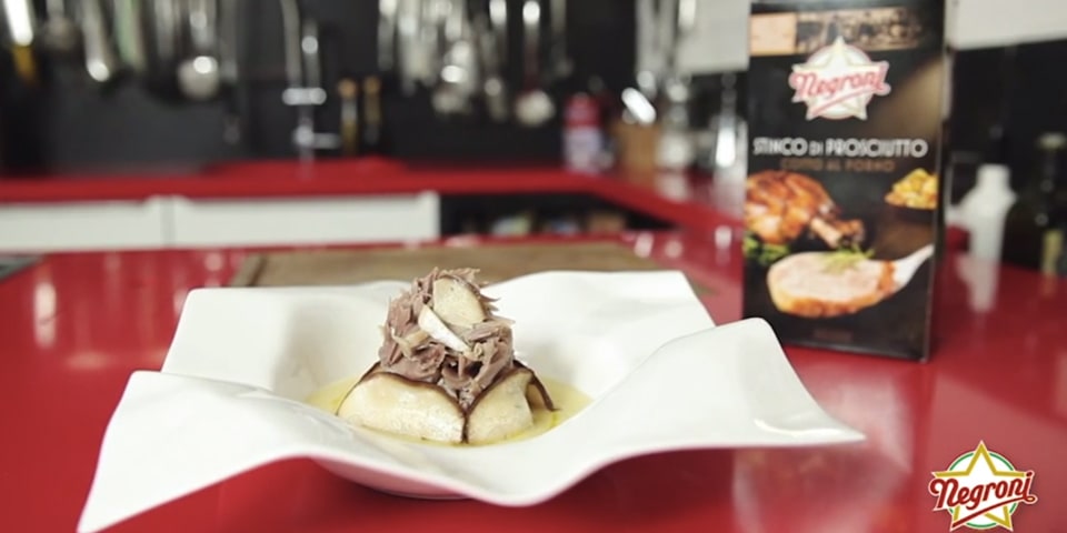 Un'insalata di stinco con porcini e crema di patate al porro, facile da preparare e soprattutto inaspettata e buonissima è la ricetta che Simone Rugiati ha realizzato per Negroni. L'idea è golosa e molto semplice da preparare. Lo Stinco di prosciutto Negroni è molto facile da preparare, quindi le possibilità di errore sono pari a zero. Una volta che sarà cotto potrete portarlo in tavola per il pranzo della domenica che diventerà subito molto speciale. La ricetta dell'insalata di stinco, grazie alla delicatezza della carne e al suo aroma leggermente speziato sarà un'ottima soluzione per una cena romantica.