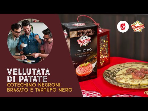 Chef Lello, dopo averci deliziato con l’idea vincente del Panino con Gran Cotechino, salsa verde e mostarda di frutta, dedicherà al Cotechino Negroni e a tutti noi un piatto elaborato e allo stesso tempo veloce e semplice da preparare con un ingrediente raffinato che lascerà tutti a bocca aperta. Un letto di potage accoglierà sulla sua superficie le fettine di Cotechino Negroni guarnite da una spolverata di tartufo nero: buona, golosa e genuina, questa ricetta sarà perfetta come secondo piatto di Natale o per stupire durante il veglione di Capodanno.