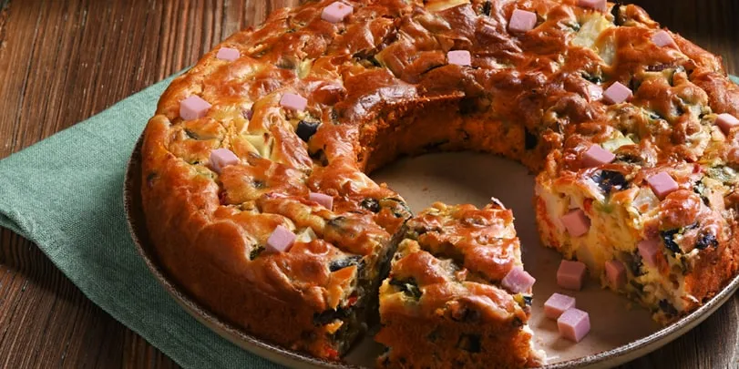 Lavate le verdure e tagliatele a cubetti, sistematele in una terrina e aggiungete anche i Cubetti di Pancetta Dolce Negroni. In un’altra terrina molto capiente rompete le uova e sbattetele con le fruste. Aggiungete l’acqua, il sale, il pepe e il formaggio grattugiato. Incorporate la farina poca alla volta e quando il composto sarà bene amalgamato unite il lievito. Continuate a sbattere per uniformare il composto. Aggiungete ora le verdure e i cubetti di pancetta. Mescolate molto bene. Ungete uno stampo per ciambella e versate all’interno il composto. Infornate a 180°C per 40 minuti. Sfornate la ciambella, lasciatela raffreddare e poi toglietela dallo stampo.