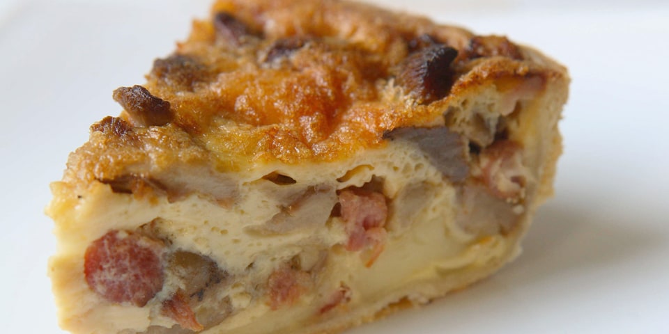 Una torta salata davvero golosa, con funghi e pancetta piccante!