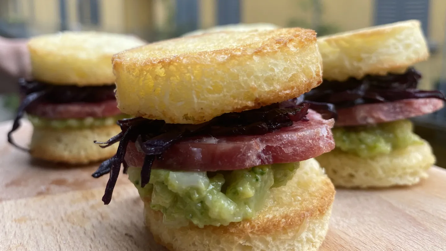 Mini sandwich con salame Negronetto e broccoletti senapati