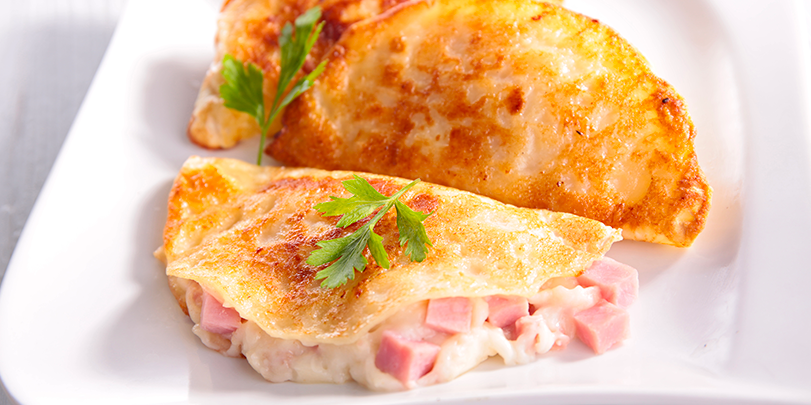 Quando le crepes saranno pronte, posizionate sopra di esse una fettina di Prosciutto cotto Stella Negroni e quelle di scamorza, chiudetele a fazzoletto e gustatele ben calde. Se necessario, scaldatele leggermente nella padella, così da far sciogliere al meglio la scamorza.