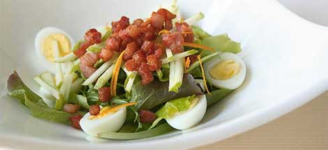 Nulla di più veloce da preparare di un’insalata che non è il solito mix di verdure un po’ noiose che saziano il tempo di arrivare al caffè. L’insalata di radicchio, speck e arance si può condire con un filo di olio e qualche goccia di aceto balsamico. Per un extra di energia si possono aggiungere delle noci oppure dei pinoli e ancora delle scaglie di grana. Scegliete il pepe al posto del sale e i sapori verranno esaltati ancora di più.