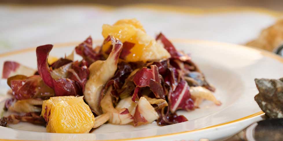 Cosa bere con l'insalata di radicchio, speck e arance.