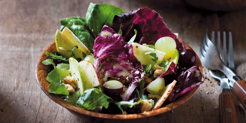 Tra le tante varietà di radicchio, quella migliore per l’insalata d’inverno, è il radicchio rosso di Treviso: reperibile da ottobre a marzo, grazie a un gusto leggermente amarognolo che si sposa con tanti ingredienti variegati, il radicchio rosso sarà il protagonista di questa ricetta originale. Il sapore deciso incontra la dolcezza delle noci e delle mele, inoltre anche cromaticamente, il mix di colori sarà assolutamente scenografico e bellissimo.