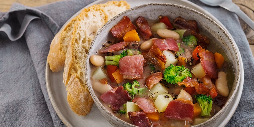 E chi lo ha detto che il minestrone è un piatto "noioso" che i bambini fanno fatica a mangiare? Con questa ricetta del minestrone rustico farete felice tutta la famiglia. Al gusto delle verdure e dei legumi di stagione, unite anche i Petali di Bacon Negroni: il risultato sarà sorprendente. Inoltre, per esaltare il sapore di tutti gli ingredienti di questo piatto, la croccantezza dei Petali di Bacon sarà assolutamente vincente. Gusto e consistenza creeranno un mix unico e la composizione del piatto sarà assolutamente scenografica e irresistbile.