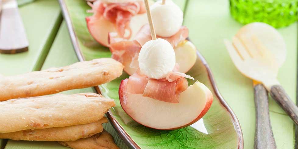 Cominciamo dall'antipasto, che anche in un pic nic all'aperto non deve e non può mancare! Alternativo al solito prosciutto crudo e melone potete gustare un altro ottimo abbinamento con la frutta: pesche noci e prosciutto crudo, insieme a qualche mozzarellina e a dei grissini leggeri. Questo abbinamento tra frutta e prosciutto crudo è ottimo anche come sostituto del pranzo o per una colazione o brunch d'estate.