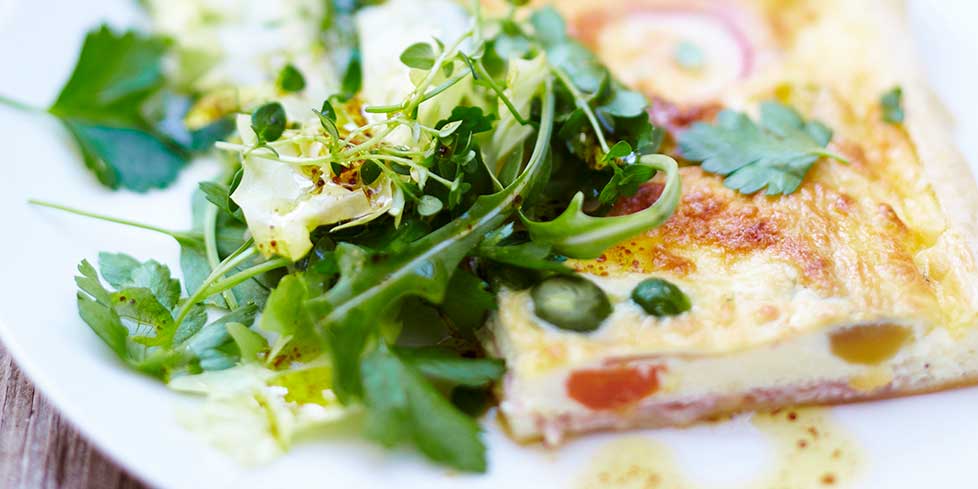 La differenza tra torta salata e quiche sta nella copertura, la torta salata è chiusa con la pasta sfoglia o brisée, mentre la quiche resta aperta. Non cambia la tipologia di preparazione per cui ci si può divertire a creare una farcitura con verdure, formaggi e salumi seguendo abbinamenti adatti a tutte le diverse stagioni. In questa versione la quiche è farcita con tante verdure e prosciutto crudo Negroni.