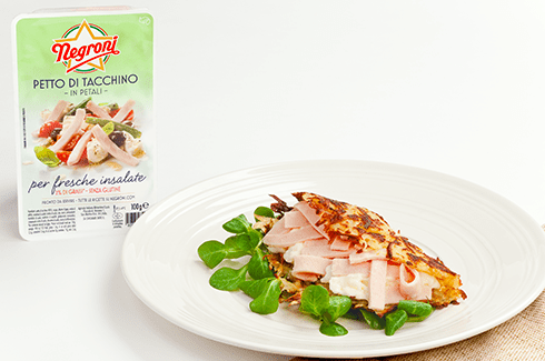 Fate cuocere per 3/4 minuti per lato e regolate di sale e pepe. Quando il vostro roesti sarà pronto mettetelo su un foglio di carta assorbente per eliminare l’olio in eccesso. Ripetete l’operazione per finire tutte le patate quindi cominciate ad impiattare. Sistemate ogni roesti sul piatto, farciteli con lo stracchino e sopra sistemate il Petto di Tacchino in Petali Negroni. Piegate i roesti a libretto come se fossero crepes e servite accompagnati da un’insalatina fresca.